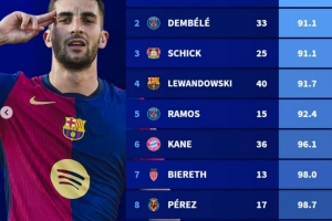 体育资讯5月4日讯 德转盘点了本赛季五大联赛球员在各项赛事中进球效率榜(至少打进10球),其中费兰每90.3分钟一球居首,以下为具体榜单:
